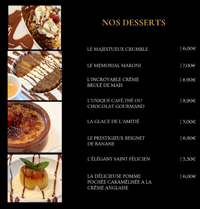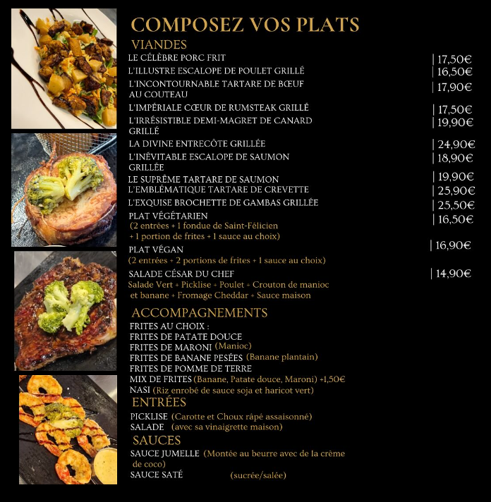 Une soirée conviviale avec des repas savoureux ? – Nos plats sont fraîchement préparés dans une ambiance accueillante. Bienvenue dans notre restaurant Restaurant Franco-guyanais Comme à la M. Profitez de nos plats délicieux et de l’ambiance authentique de notre restaurant. Notre restaurant climatisé vous accueille pour passer un moment agréable peu importe la température extérieure.