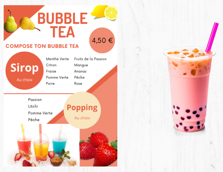 Chez Ma passion fourmande, nous sommes fiers de vous présenter une expérience gustative exceptionnelle, alliant le meilleur du Bubble Tea, des Fresh Drinks et des Coffee Drinks.