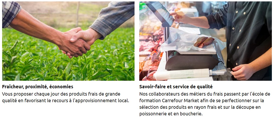 Carrefour Market, c’est plus de 1020 magasins partout en France. Nous sommes en contact permanent avec les éleveurs et les agriculteurs pour privilégier l’économie de proximité et l’approvisionnement local. Chaque jour, retrouvez, dans nos magasins, des produits frais et de qualité ainsi que des produits du quotidien à prix juste.